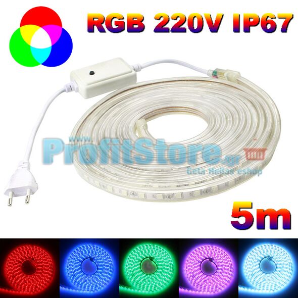 Πλήρες Σετ 5 μέτρων LED RGB 220V IP67 Αδιάβροχης Ταινίας Heavy Duty με τροφοδοτικό & controller.