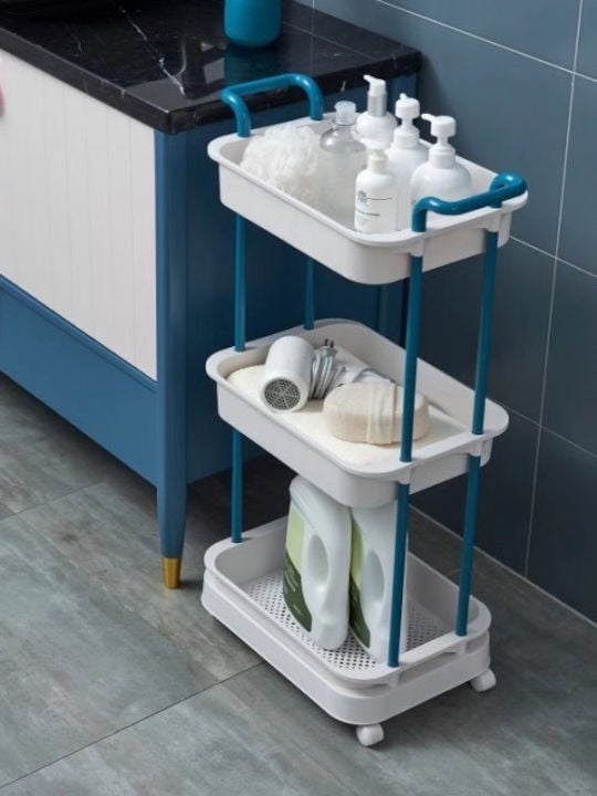 Ανθεκτικό Καρότσι Τρόλεϊ & Τριπλή Διάτρητη Ραφιέρα Μπάνιου - Κουζίνας έως 45kg με Ρόδες 53x87,5x30cm Πλαστικό