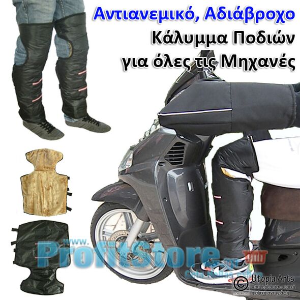 Από ανθεκτικό αντιανεμικό και αδιάβροχο υλικό με μαλακή εσωτερική χνουδωτή επένδυση. Πολύ ζεστά, προστατεύουν τα πόδια του αναβάτη απο το κρύο, τη βροχή, την υγρασία και το χιόνι.