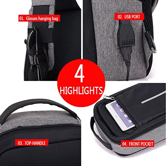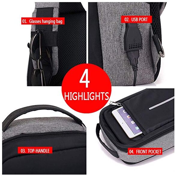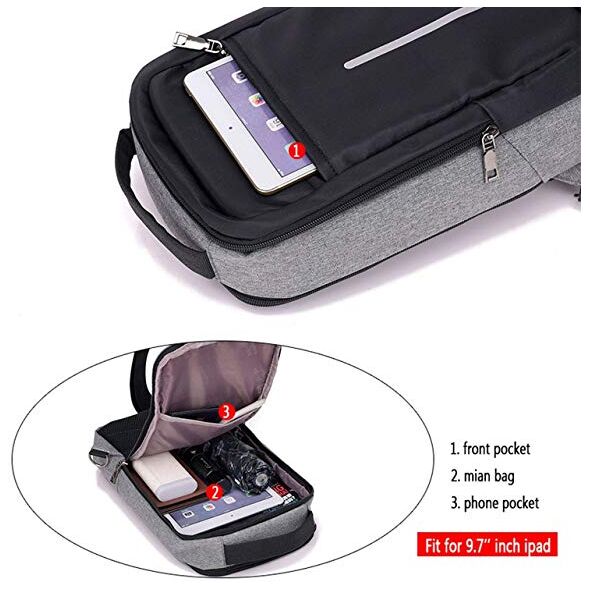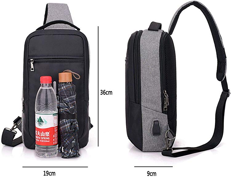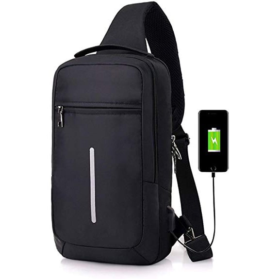Αντικλεπτικό Σακίδιο Πλάτης - Powerbank με Θύρα USB και Ενσωματωμένο Καλώδιο Φόρτισης - Travel Chest Bag Μαύρο