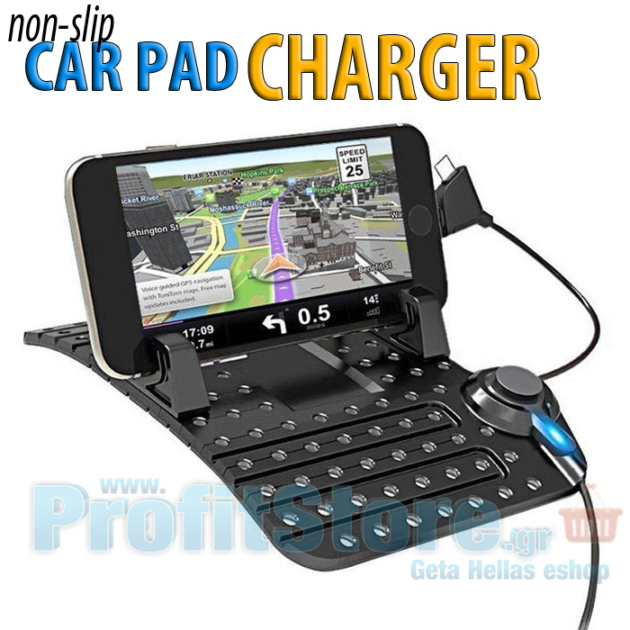 Αντιολισθητική Εύκαμπτη Βάση Στήριξης & Φόρτισης 2 σε 1 Αυτοκινήτου για Andoid & Iphone Smartphones Κινητά, GPS - Non-Slip Flexible Car Holder Charger OEM