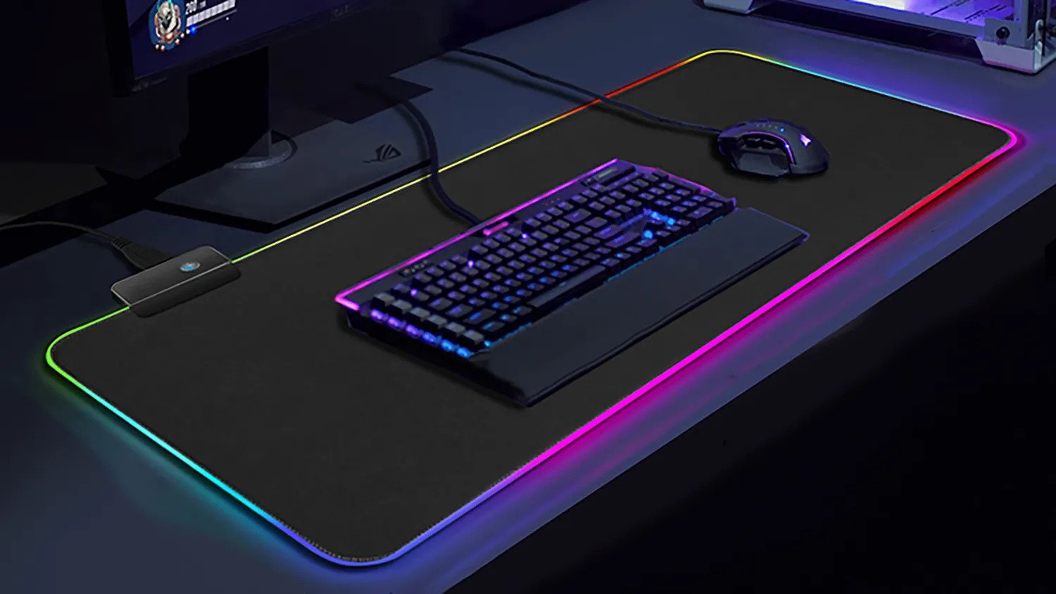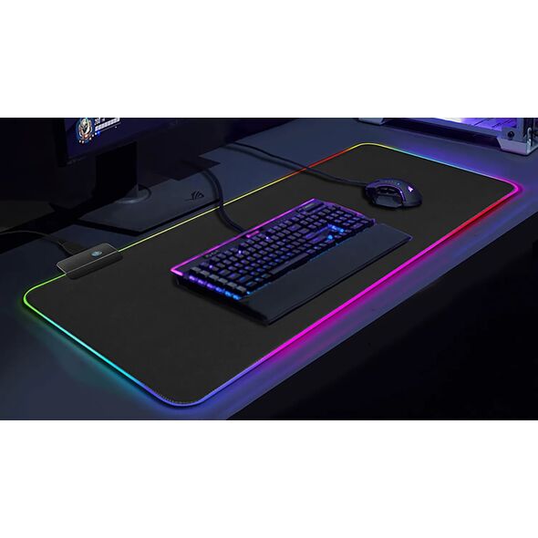 Αντιολισθητικό Gaming Mouse Pad Φωτιζόμενο με LED Αυτόματης Εναλλαγής 7 Χρωμάτων 80x30cm Μαύρο