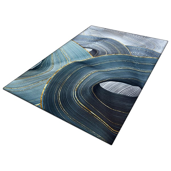 Αντιολισθητικό Χαλί Μοκέτα με Τρισδιάστατο Αφηρημένο Σχέδιο -Abstract σε Μπλε Χρυσό Χρώμα 290x200εκ