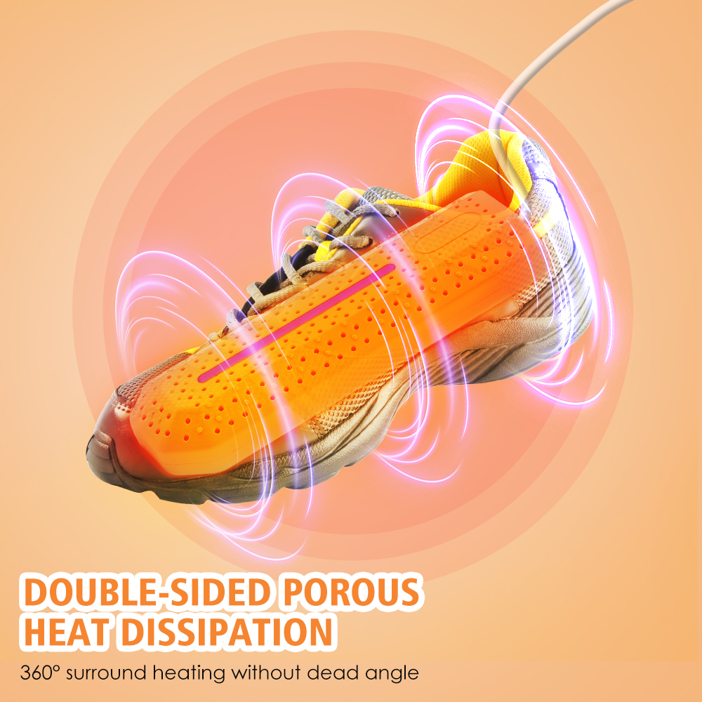 - Στεγνώνει κυκλικά 360° όλο το εσωτερικό των παπουτσιών