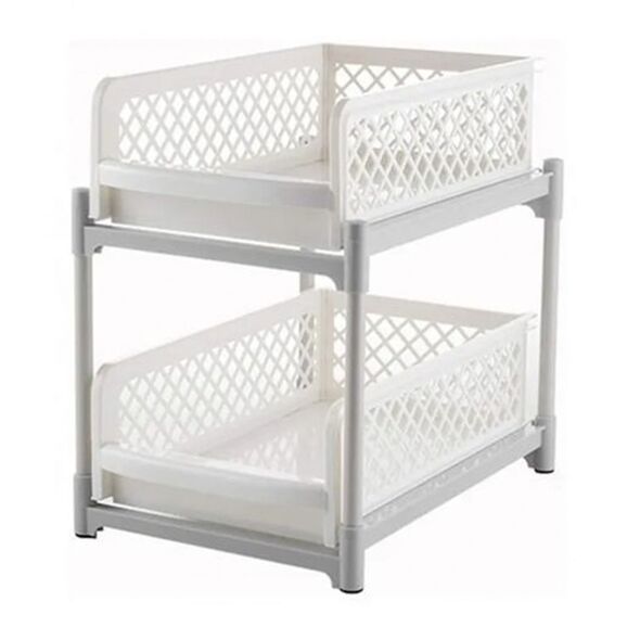 Αποθηκευτική Επιτραπέζια Ραφιέρα Βάση Οργάνωσης με 2 Ράφια 39x29x18cm Πλαστική Λευκή Γκρι