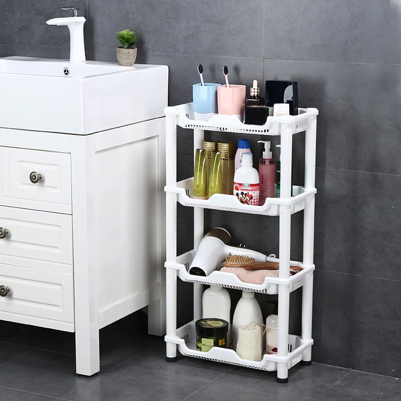 Αποθηκευτική Ραφιέρα με 4 Ράφια - Επίπεδα Άσπρο - Four Layers Storage Shelf Μπάνιου - Κουζίνας Πλαστική
