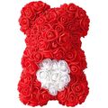 Αρκουδάκι από Τεχνητά Τριαντάφυλλα σε Συσκευασία Δώρου με Φιόγκο 25cm - Αρκούδι που κρατάει Καρδούλα Rose Bear - Δώρο Αγίου Βαλεντίνου - Κόκκινο
