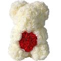 Αρκουδάκι από Τεχνητά Τριαντάφυλλα σε Συσκευασία Δώρου με Φιόγκο 25cm - Αρκούδι που κρατάει Καρδούλα Rose Bear - Δώρο Αγίου Βαλεντίνου - Λευκό