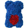 Αρκουδάκι από Τεχνητά Τριαντάφυλλα σε Συσκευασία Δώρου με Φιόγκο 25cm - Αρκούδι που κρατάει Καρδούλα Rose Bear - Δώρο Αγίου Βαλεντίνου Μπλε