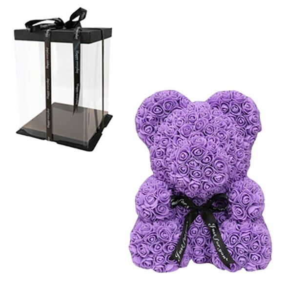 Αρκουδάκι από Τεχνητά Τριαντάφυλλα σε Συσκευασία Δώρου σε Μωβ Χρώμα 25cm
