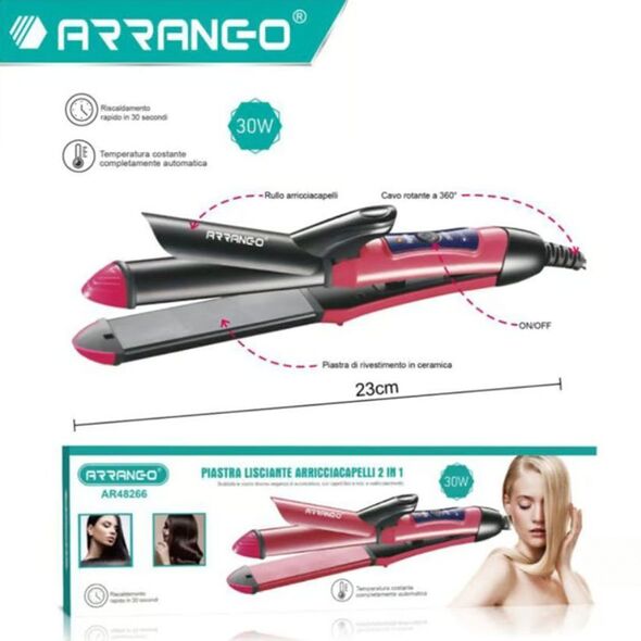 Arrango Επαγγελματική Ισιωτική - Πρέσα Μαλλιών 30W 2 σε 1 με Κεραμικές Πλάκες - Ροζ