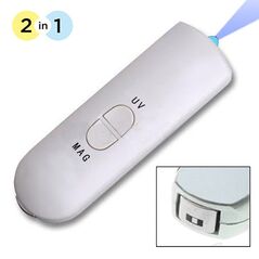 Μεγεθυντικός φακός - λούπα μεγενθύνει μέχρι και σαράντα φορές. Ιδανικό για κοσμήματα, τυπογράφους, συλλέκτες γραμματοσήμων ωρολογοποιούς ηλεκτρονικούς και άλλους τεχνικούς. Με blue UV light για ανίχνευση γνησιότητας χαρτονομισμάτων.