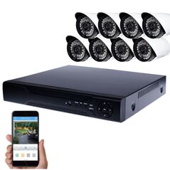 Πλήρες σετ CCTV με 8 ενσύρματες αδιάβροχες κάμερες 3MP και DVR 8 καναλιών με HDMI/VGA, απομακρυσμένη παρακολούθηση, νυχτερινή λήψη και ανίχνευση κίνησης. Ιδανικό για σπίτι και επαγγελματικούς χώρους.