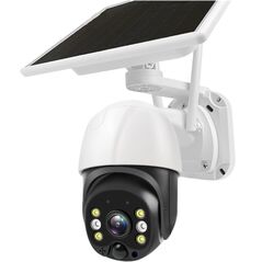 Ηλιακή ασύρματη κάμερα ασφαλείας με SIM, Full HD ανάλυση, αμφίδρομη επικοινωνία και αδιάβροχη προστασία IP65. Διαθέτει ανίχνευση κίνησης, νυχτερινή όραση με LEDs και ηλιακή φόρτιση για συνεχή λειτουργία. Ιδανική για εξωτερικούς χώρους χωρίς WiFi.