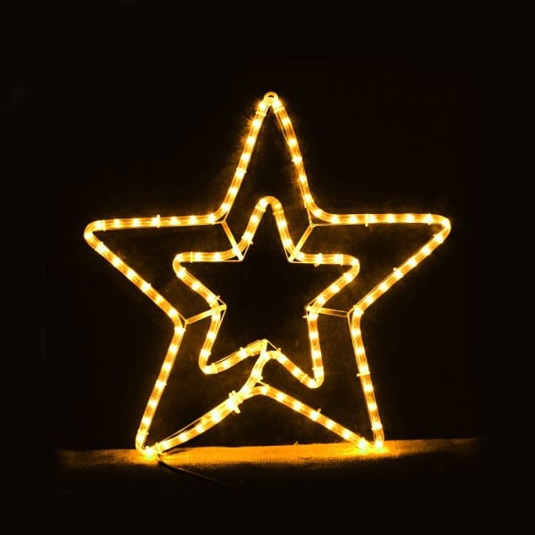 Αστέρι Διπλό Λευκό - Θερμό Led Φωτοσωλήνας 55x56cm - Χριστουγεννιάτικο Αστέρι Σωλήνας