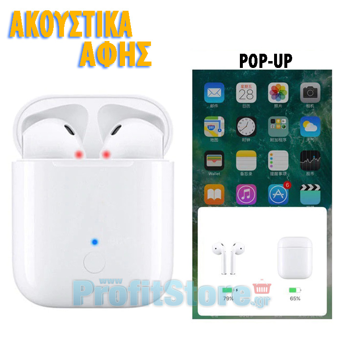 Ασύρματα Ακουστικά Αφής Bluetooth 5.0 με Μικρόφωνο, Pop-up στο Κινητό - Handsfree Earphones χωρίς Καλώδιο