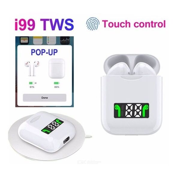 Ασύρματα Ακουστικά Bluetooth i99 με Ψηφιακή Οθόνη στη Θήκη Φόρτισης