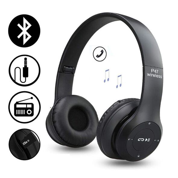 Ασύρματα Ακουστικά Bluetooth με Ενσωματωμένο Μικρόφωνο & Υποδοχή για MicroSD - Wireless BT Over Ear, Μαύρα