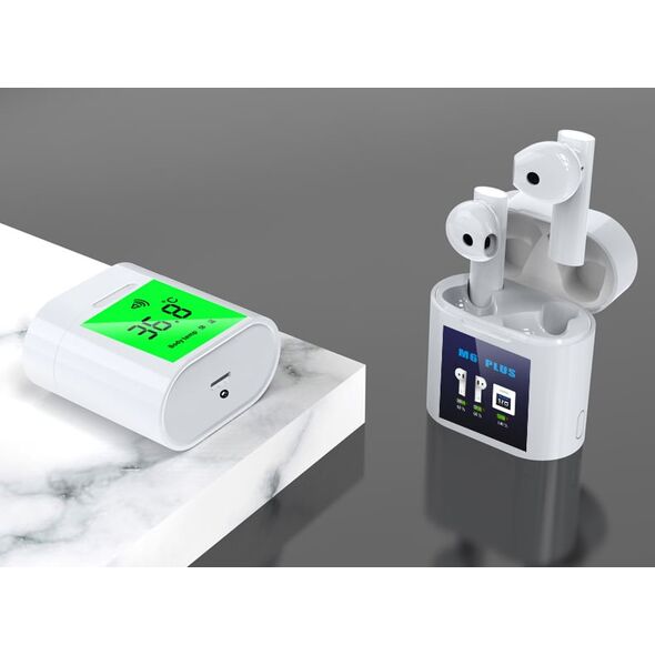 Ασύρματα Ακουστικά Bluetooth με Θήκη Φόρτισης, Οθόνη LCD & Μέτρηση Θερμοκρασίας Σώματος - TWS Άσπρο