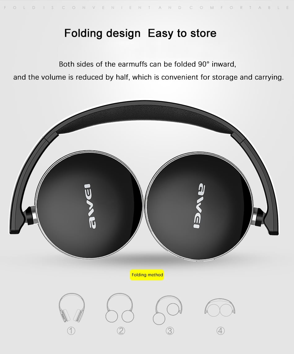 Ασύρματα & Ενσύρματα On-Ear Ακουστικά AWEI A500BL Bluetooth Headphones Aux, Handsfree με Μικρόφωνο - Foldable Wireless Headset Noise Canceling