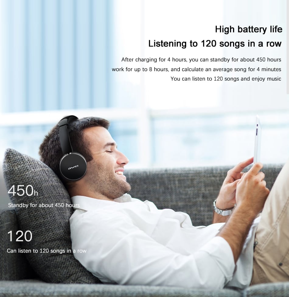 Ασύρματα & ενσύρματα on-ear bluetooth ακουστικά A500BL, υψηλής ποιότητας και αισθητικής, με είσοδο AUX Jack 3,2mm για σύνδεση με το κινητό ή κάποια άλλη εξωτερική πηγή ήχου με την εγγύηση της AWEI.