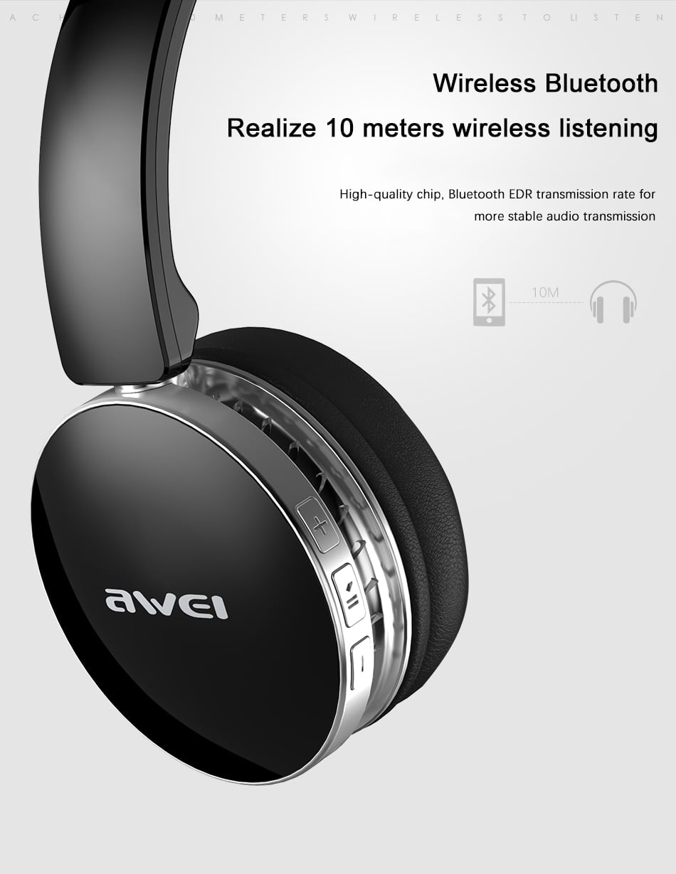 Ασύρματα & ενσύρματα on-ear bluetooth ακουστικά A500BL, υψηλής ποιότητας και αισθητικής, με είσοδο AUX Jack 3,2mm για σύνδεση με το κινητό ή κάποια άλλη εξωτερική πηγή ήχου με την εγγύηση της AWEI.