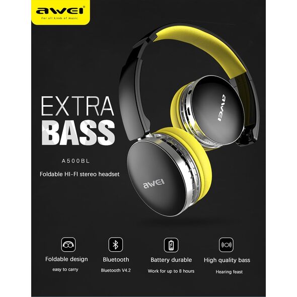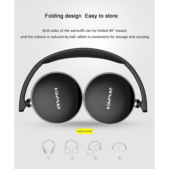 Ασύρματα & Ενσύρματα On-Ear Ακουστικά AWEI A500BL Bluetooth Headphones Aux, Handsfree με Μικρόφωνο - Foldable Wireless Headset Noise Canceling