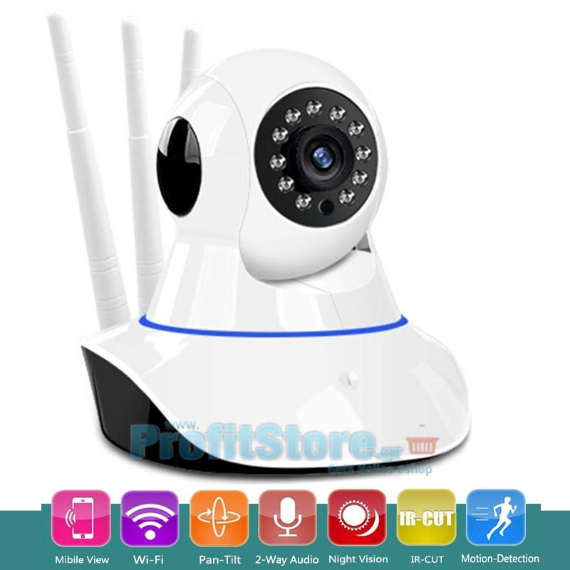 Ασύρματη IP WiFi/Ethernet Κάμερα HD 720p Pan/Tilt με Νυχτερινή Λήψη, Ανιχνευτή Κίνησης, Ειδοποίηση στο Κινητό, Μικρόφωνο, Ηχείο (Ενδοεπικοινωνία Μωρού), Σειρήνα, 3 Κεραίες & Micro SD
