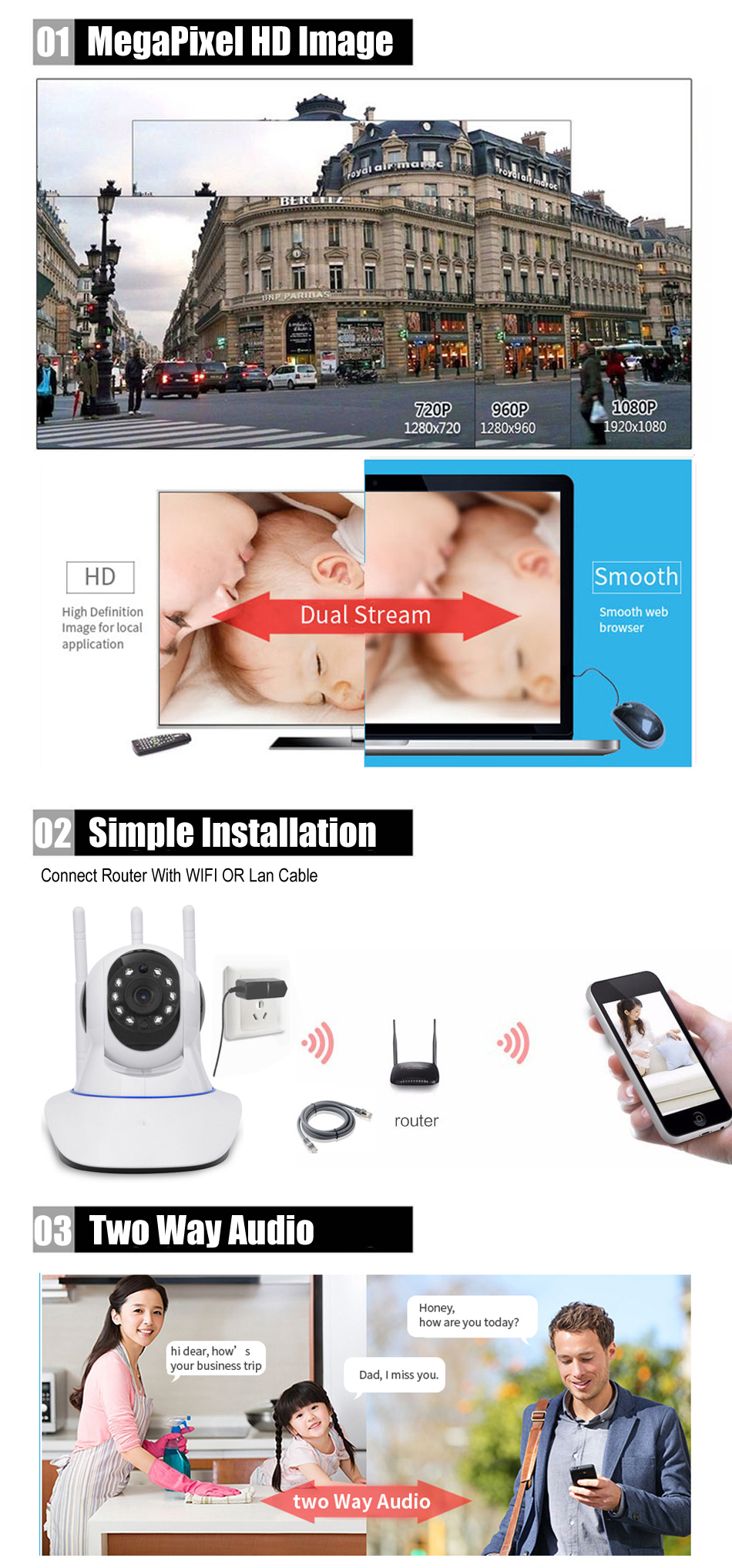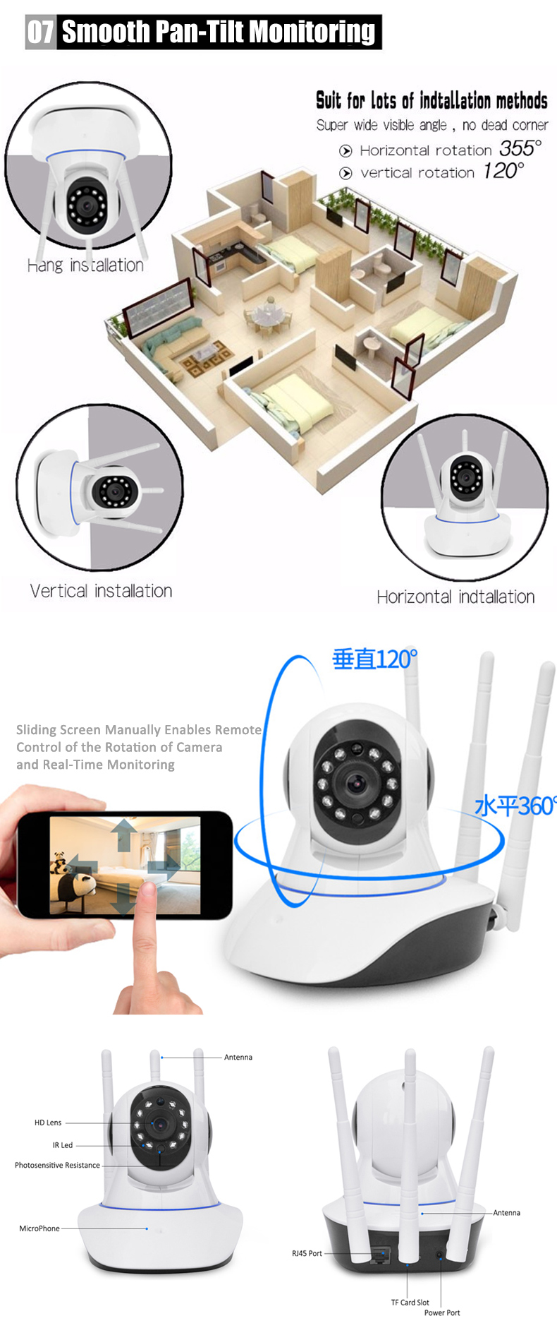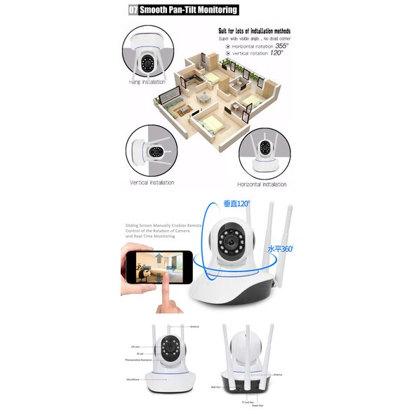 Ασύρματη IP WiFi/Ethernet Κάμερα HD Pan/Tilt με Νυχτερινή Λήψη, Ανιχνευτή Κίνησης, Ειδοποίηση στο Κινητό, Μικρόφωνο, Ηχείο (Ενδοεπικοινωνία Μωρού), Σειρήνα, 3 Κεραίες & Micro SD