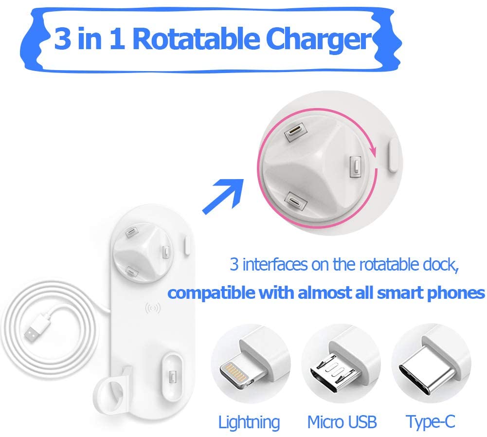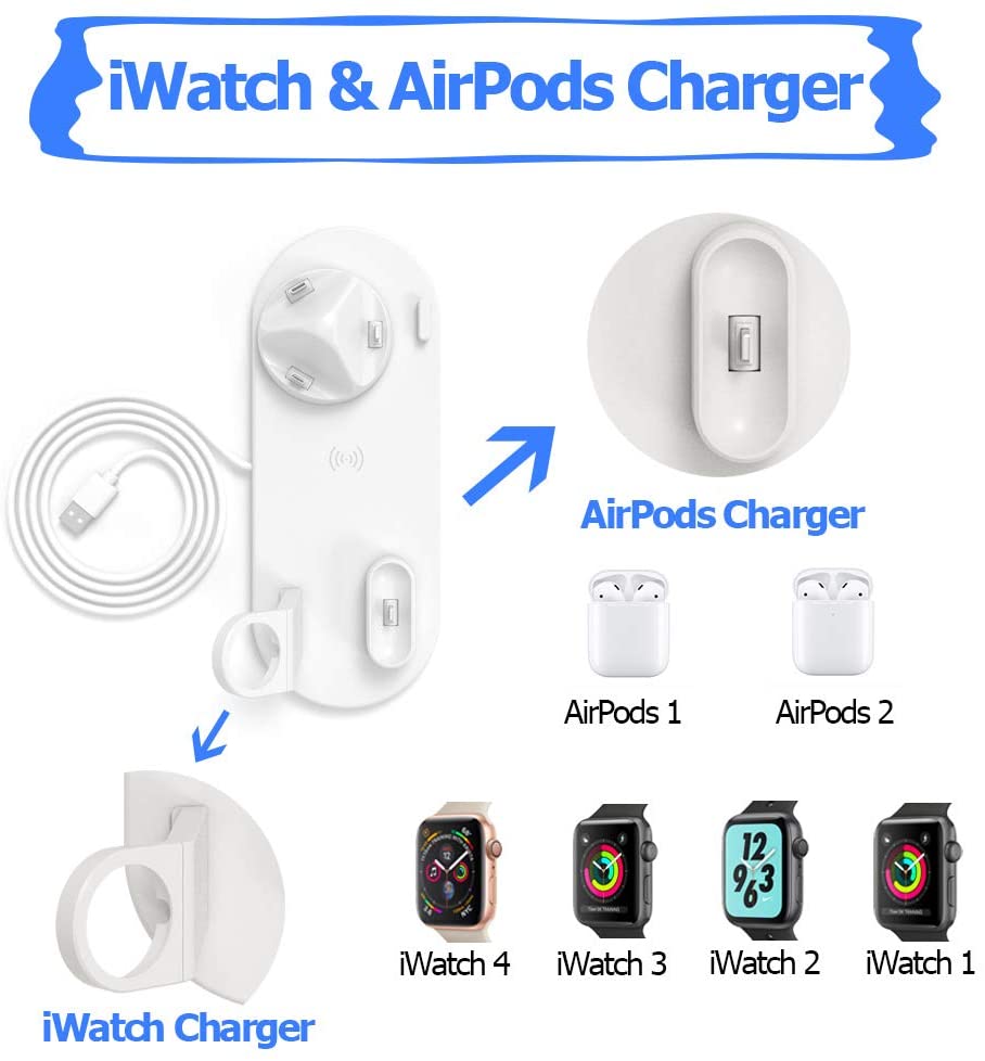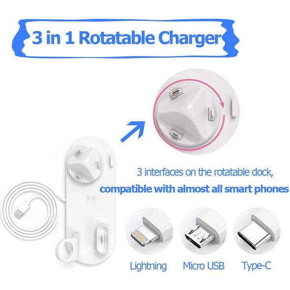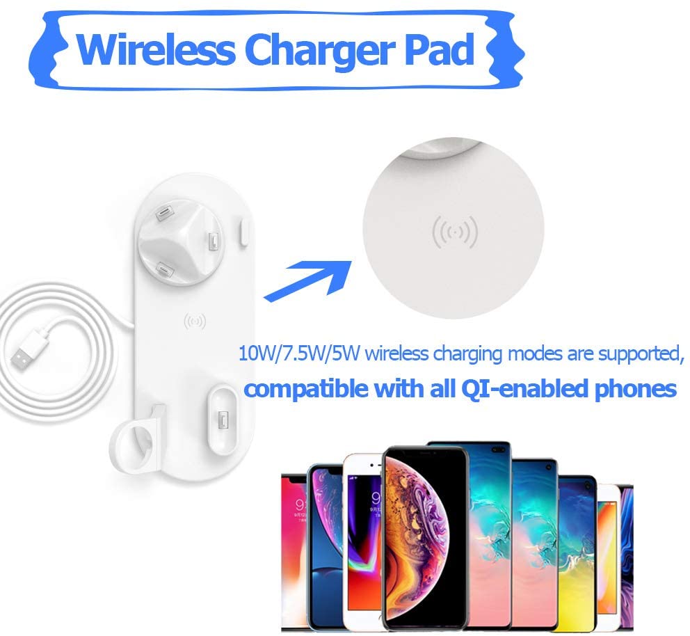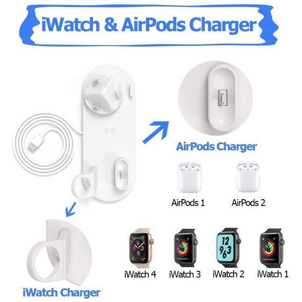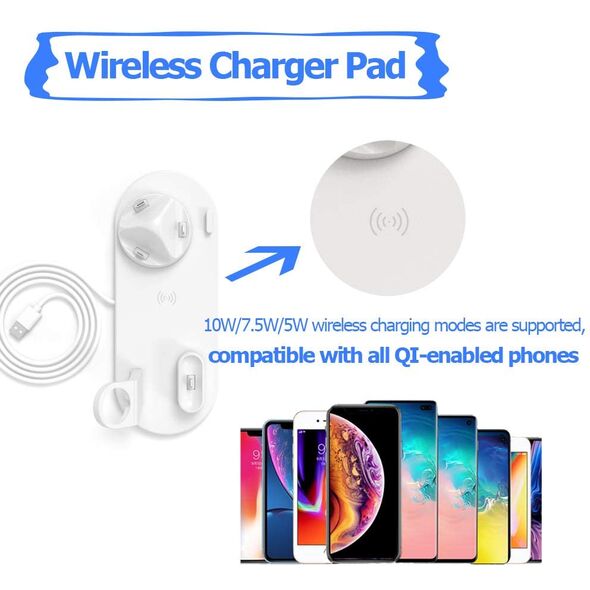 Ασύρματη Λευκή Βάση Φόρτισης 5 σε 1 - Multi-Function Charging Stand for iPhone/Micro USB/Type-C Phone, Wireless & iWatch/AirPods Charger Λευκό