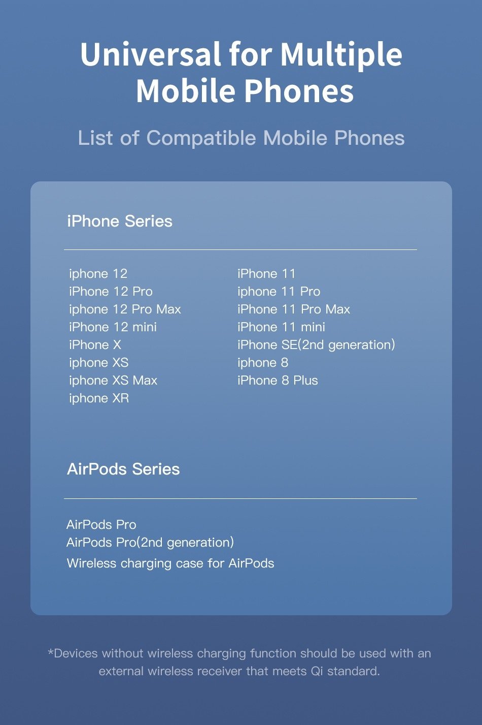 Συμβατό με όλες τις συσκευές που υποστηρίζουν ασύρματη φόρτιση.