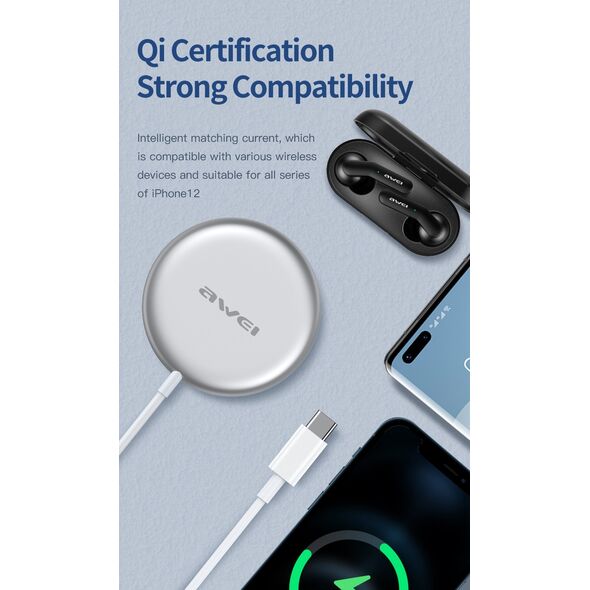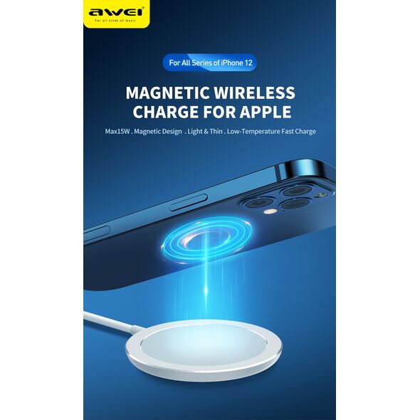 Ασύρματη Μαγνητική Magsafe Βάση Ταχυφόρτισης για Apple Awei® Type-C σε Lightning - Λευκή