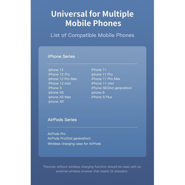Συμβατό με όλες τις συσκευές που υποστηρίζουν ασύρματη φόρτιση.