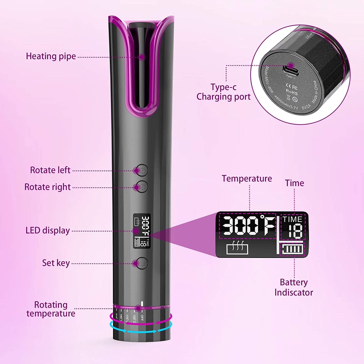 Ασύρματη Συσκευή για Μπούκλες - Επαναφορτιζόμενη με LCD Οθόνη - Cordless Hair Curler Ανθρακί