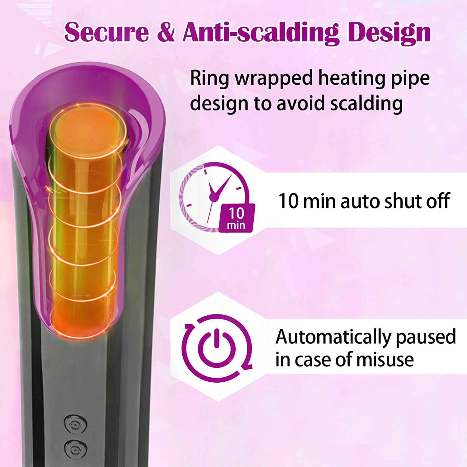 Η συσκευή τραβάει τα μαλλιά αυτόματα στο θάλαμο τουρμαλίνης όπου κρατούνται και θερμαίνονται από όλες τις πλευρές μέχρι να σχηματιστεί η τέλεια μπούκλα. Διαθέτει λειτουργία αυτόματης περιστροφής και κατσαρώματος.