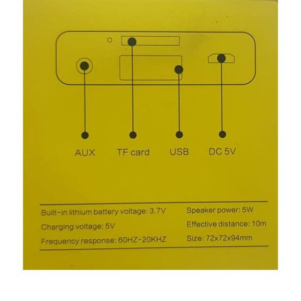 - Θύρες AUX, USB, TF card, DC 5V