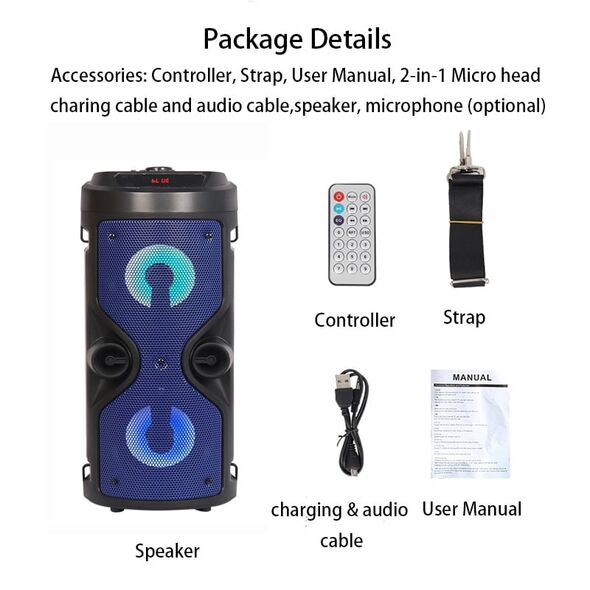 Ασύρματο Ηχείο Bluetooth με LED Φωτισμό USB/SD/AUX/FM Radio & Mic Karaoke - Ηχοσύστημα Multimedia Player με Τηλεχειριστήριο