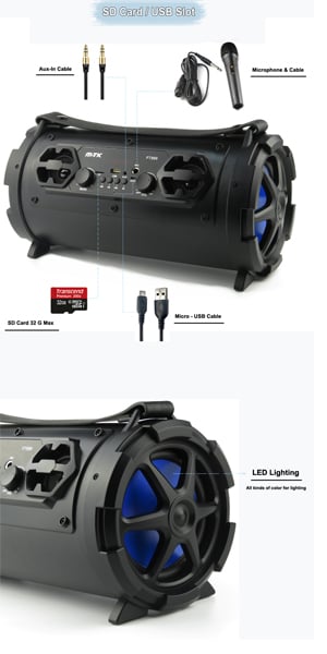 Σας παρουσιάζουμε το νέο ασύρματο, φορητό Ηχείο Bluetooth με δυνατό και καθαρό ήχο που συνδέεται με κινητά τηλέφωνα, tablets και οποιαδήποτε άλλη συσκευή υποστηρίζει ασύρματη συνδεσιμότητα Bluetooth. Ο ήχος του είναι εκπληκτικός σε σημείο που να απορεί κανείς με το μέγεθος του. Εξαιρετική απόδοση, δυνατός, καθαρός και γεμάτος ήχος! Σε συνδιασμό με το Μικρόφωνο μπορείτε να το μετατρέψετε σε εξαιρετικό Karaoke!