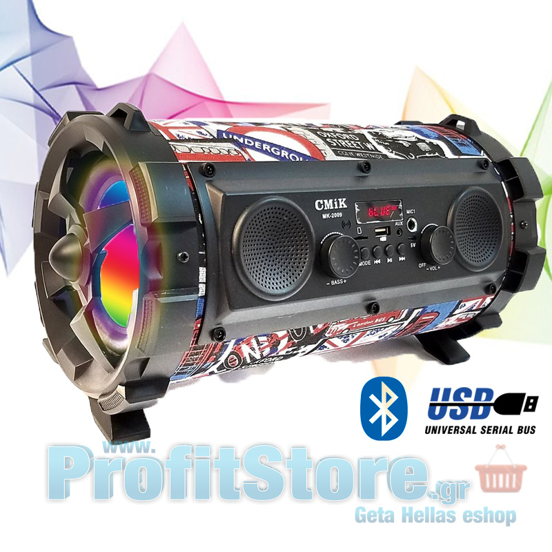 Ασύρματο Ηχοσύστημα Bluetooth με LED Φωτισμό USB,SD,AUX,FM Radio & Mic Karaoke - Ηχείο Multimedia Player