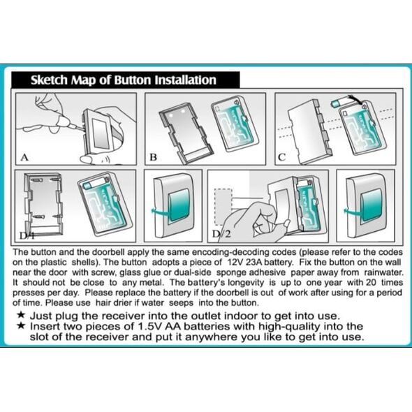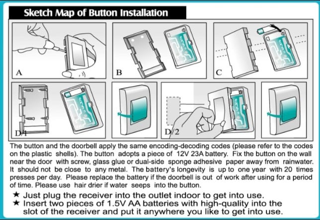 - Η μπαταρία του πομπού περιλαμβάνεται στην συσκευασία και έχει αυτονομία ενός χρόνου τουλάχιστον με 20 κουδουνίσματα τη μέρα.