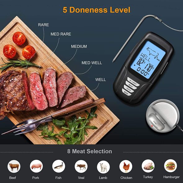 Ασύρματο Ψηφιακό Θερμόμετρο Κρέατος BBQ με 5 Ενδείξεις Ψησίματος