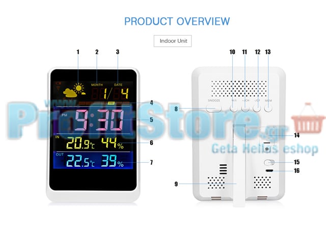 - Ενδειξη Ημερομηνίας, ώρας, εσωτερικής και εξωτερικής θερμοκρασίας