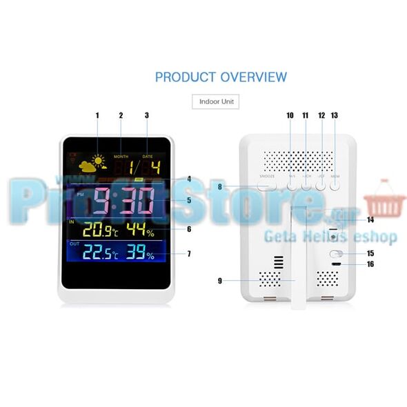 - Ενδειξη Ημερομηνίας, ώρας, εσωτερικής και εξωτερικής θερμοκρασίας