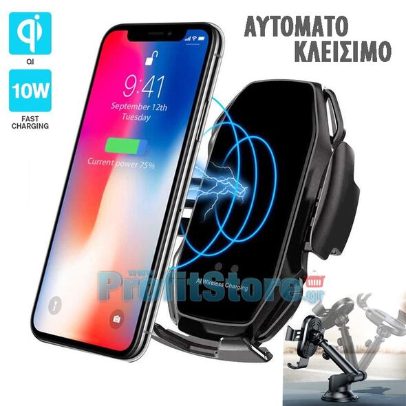 Ασύρματος Φορτιστής Αυτοκινήτου Αφής που Ανοιγοκλείνει Αυτόματα - Βάση Φόρτισης & Στήριξης Κινητού για Αυτοκίνητο - QI Fast Charge Wireless Car Charger με Βάση Βεντούζα με Επεκτεινόμενο Βραχίονα
