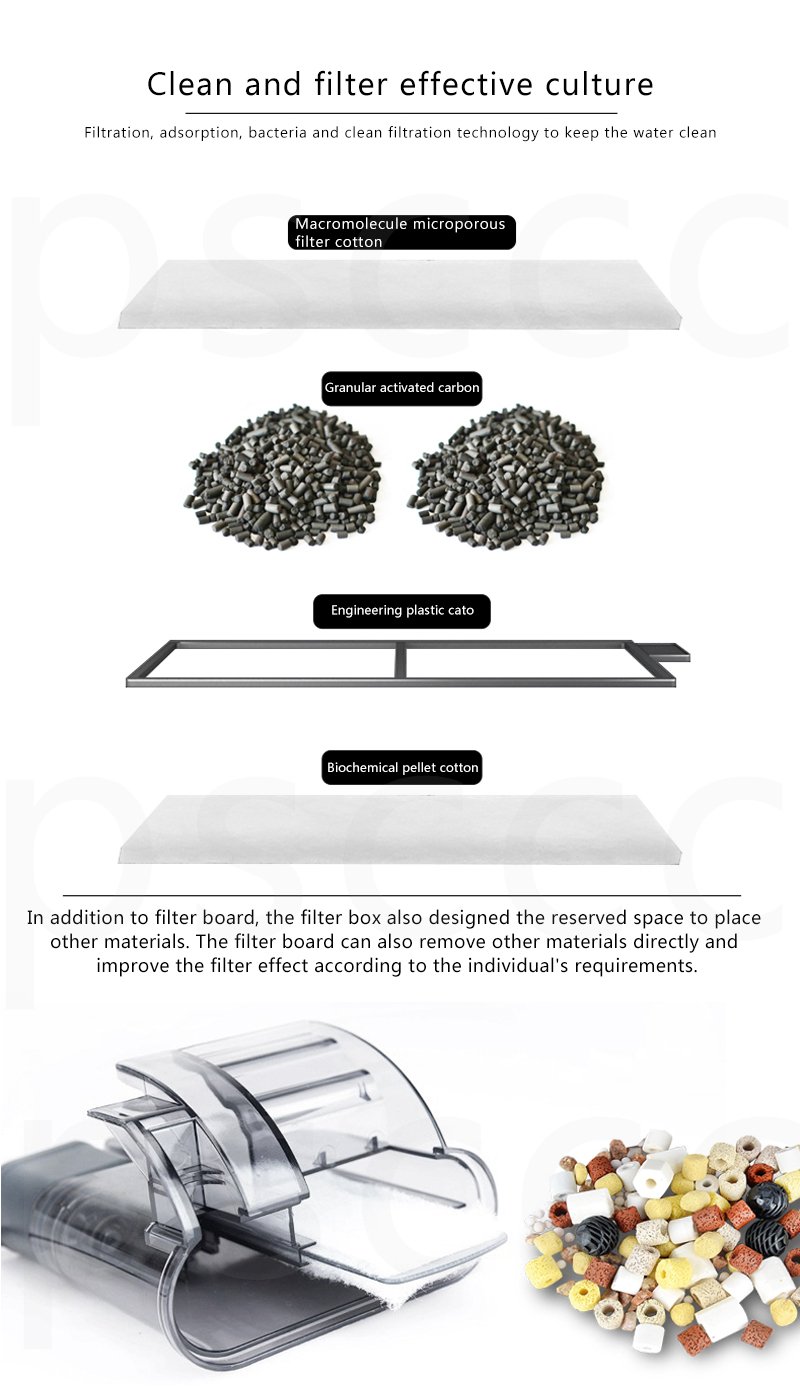 - Η αντλία αντλεί νερό από το κάτω μέρος και από την επιφάνεια του ενυδρείου, μετά το νερό ρέει μέσα από τα φίλτρα και τελικά απελευθερώνεται πίσω στο ενυδρείο.