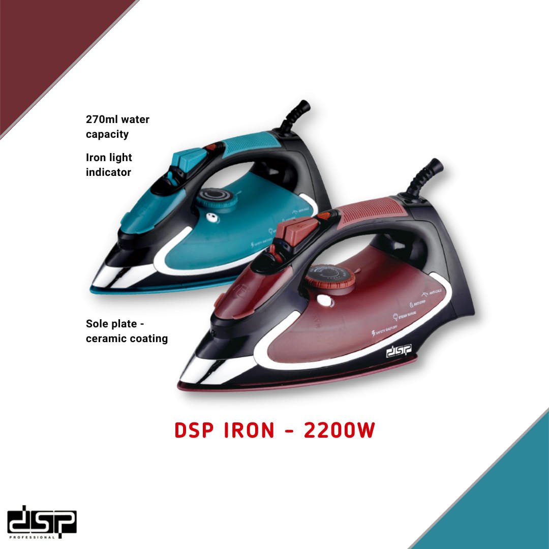 Με το σίδερο ατμού της DSP® με ισχύ 2200W, παραγωγή ατμού 50gr/min και χωρητικότητα δοχείου νερού 270ml, αντιμετωπίζεις με ένα μόνο πέρασμα, ακόμα και την πιο επίμονη ζάρα.