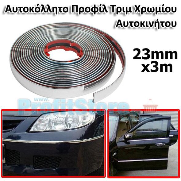 Αυτοκόλλητο Προφίλ Τριμ Χρωμίου Αυτοκινήτου 23mm - 3 μέτρων