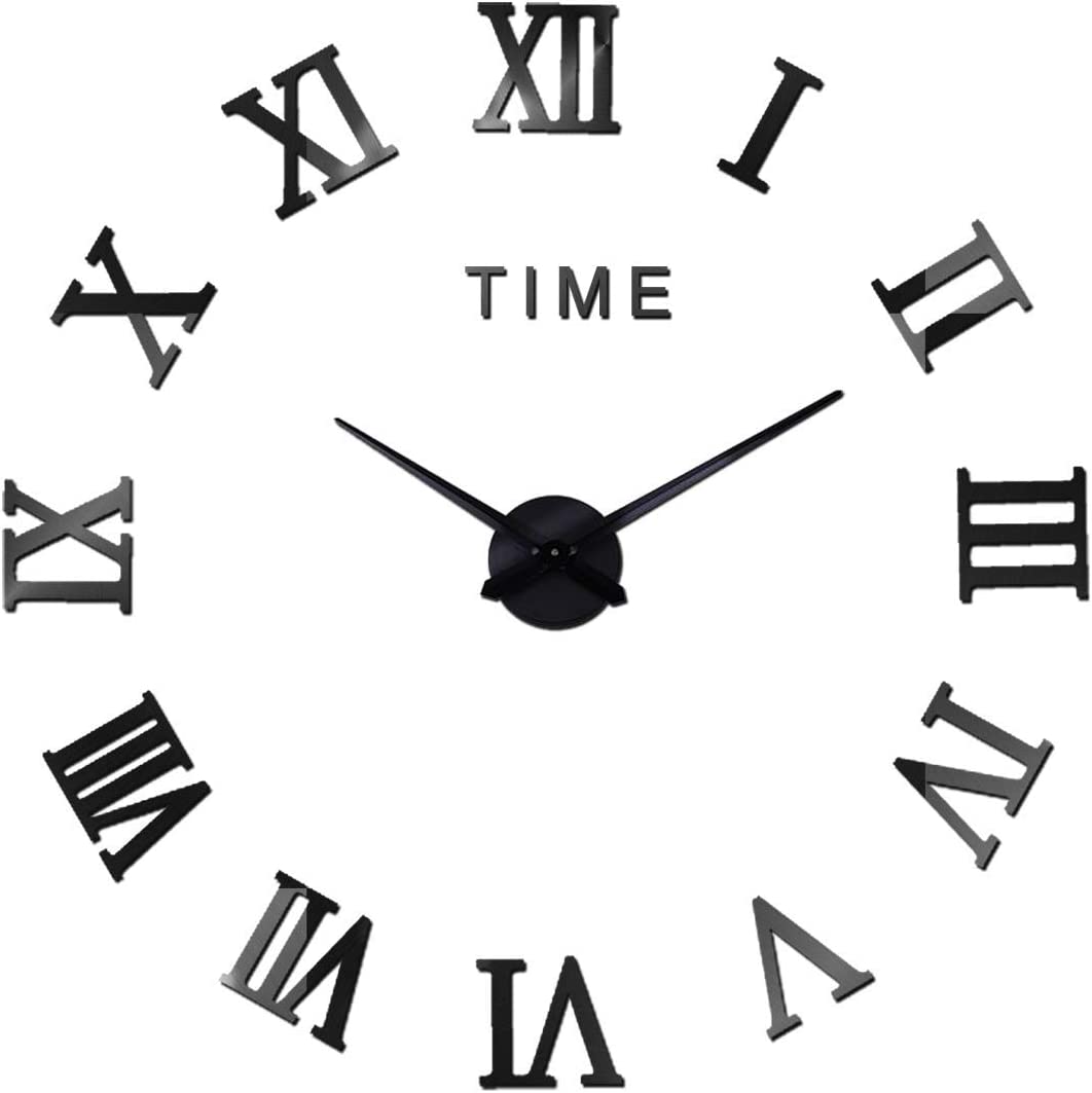 Αυτοκόλλητο Ρολόι Τοίχου Ακρυλικό DIY με Μηχανισμό Quartz και Λατινικούς Αριθμούς Time 40cm Μαύρο