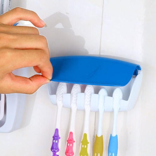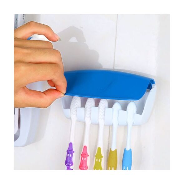 - Διαθέτει επίσης και σκεπαστή θήκη για πέντε οδοντόβουρτσες, που την κολλάτε δίπλα στην συσκευή με την αυτοκόλλητη ταινία που διαθέτει στο πίσω μέρος, εξοικονομώντας χώρο και κρατώντας τις οδοντόβουρτσες πάντα καθαρές.