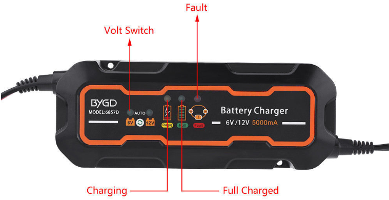 Επιπλέον, ο φορτιστής αυτός, διαθέτει λυχνία LED για να υποδεικνύει το στάδιο φόρτισης, την ολοκληρωμένη φόρτιση και την λάθος συνδεσμολογία.
